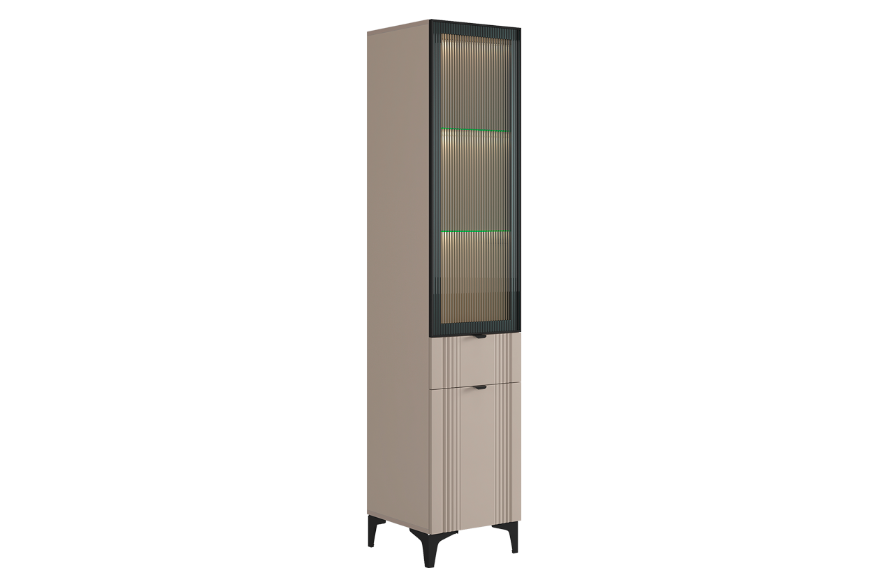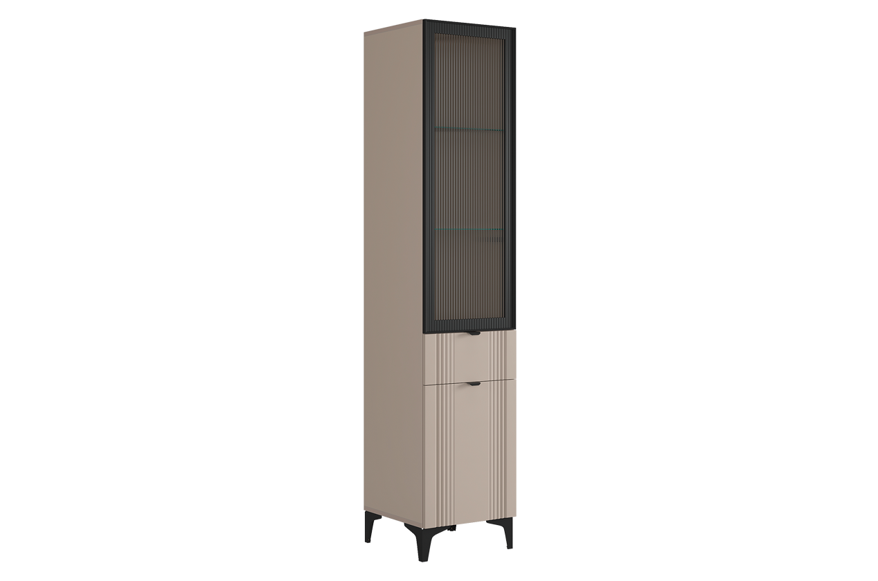 Шкаф однодверный со стеклом Рич кашемир/фрапучино матовый/черный