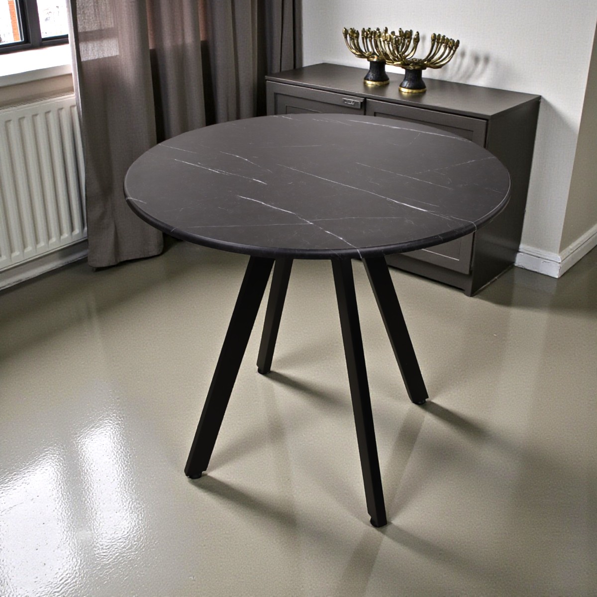 —Стол Эйдан-80, D800, ПВХ Мрамор черный+опора Z 04 (ЧЕРНЫЙ)