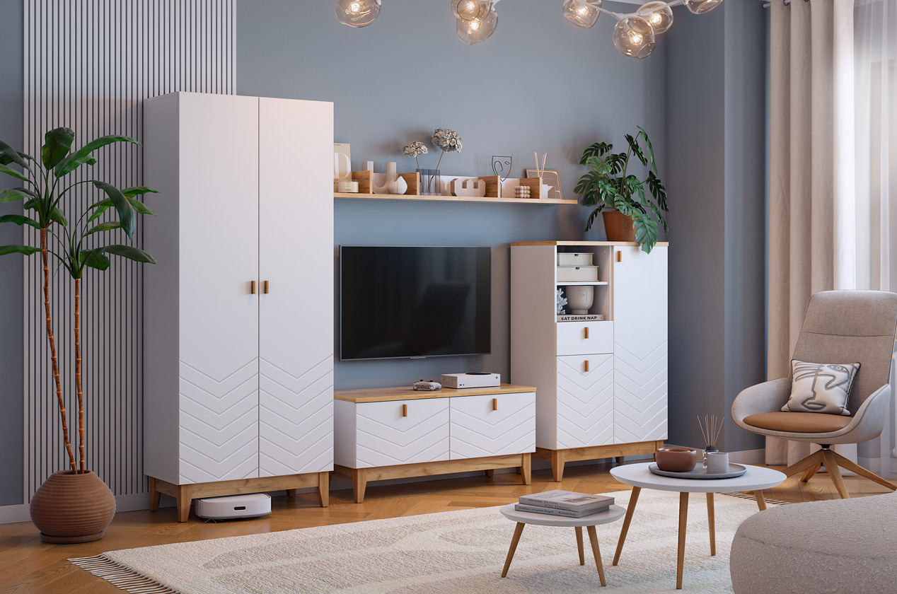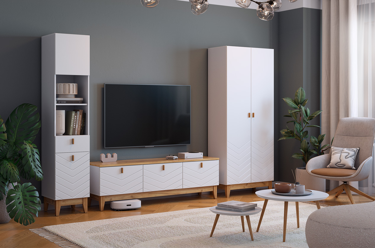 —Шкаф двухдверный Хюгге белое дерево/дуб крафт золотой/белый матовый