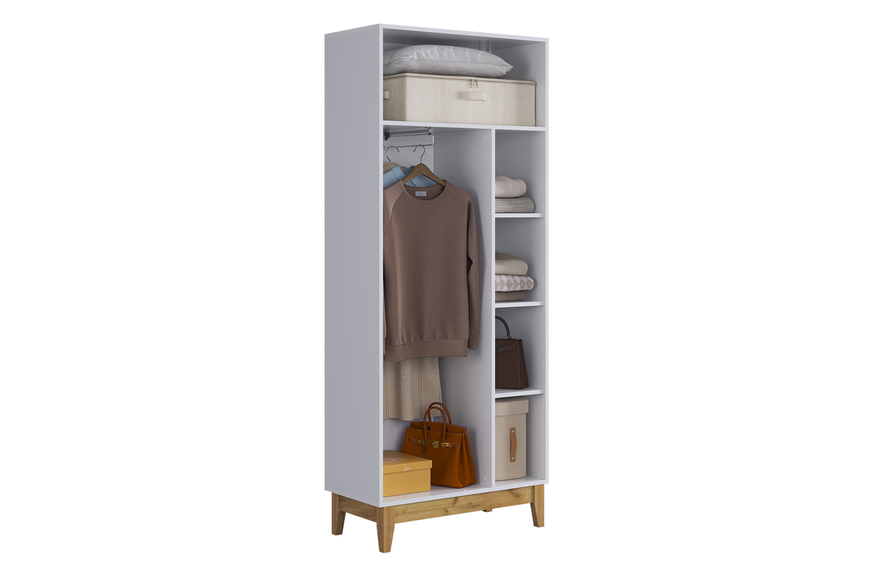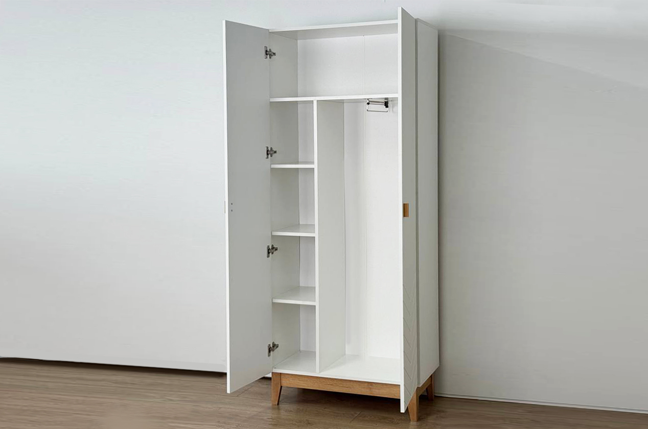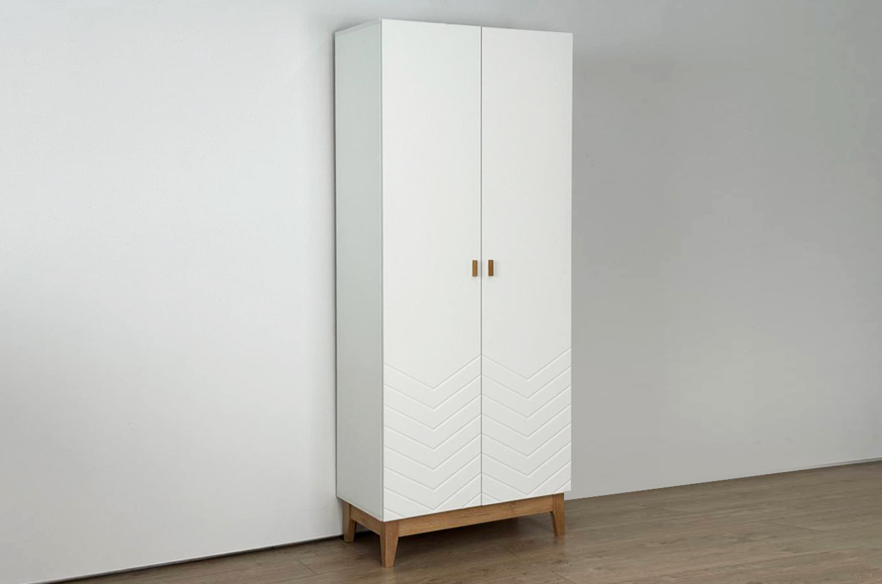 Шкаф двухдверный Хюгге белое дерево/дуб крафт золотой/белый матовый