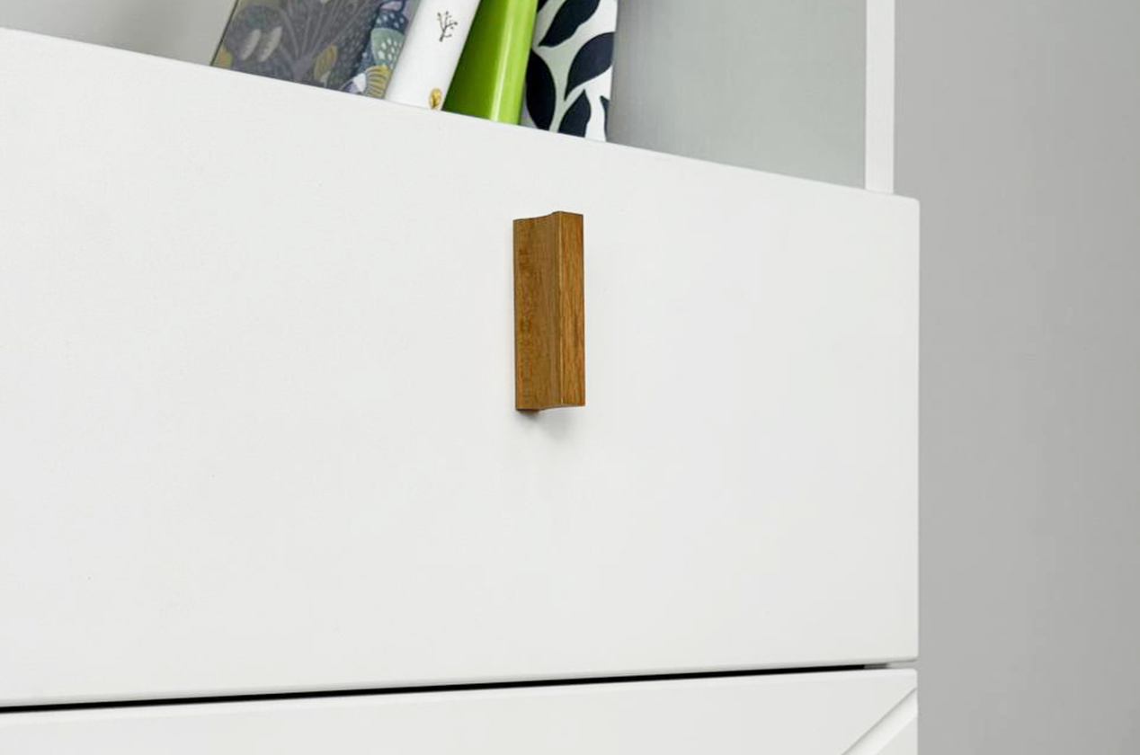 Узкий многофункциональный стеллаж для организации хранения в любом помещении. Модель сочетает закрытые и открытые секции, что позволяет гибко зонировать пространство и поддерживать порядок. Выполнен в лаконичном скандинавском стиле.