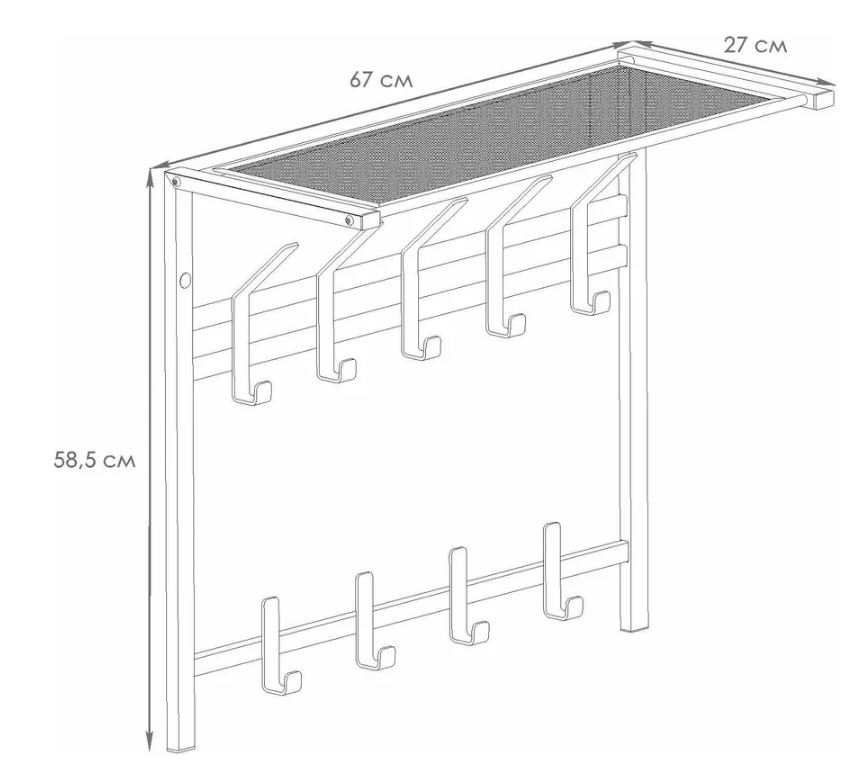 —Вешалка Торонто 22 с полкой 2-х ярусная металл Черный*670 /ВСПТ22 Ч