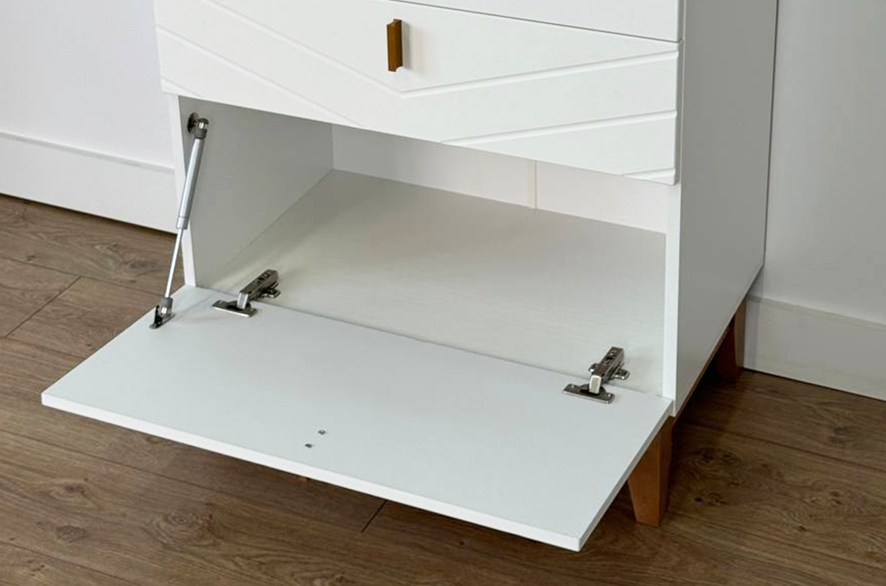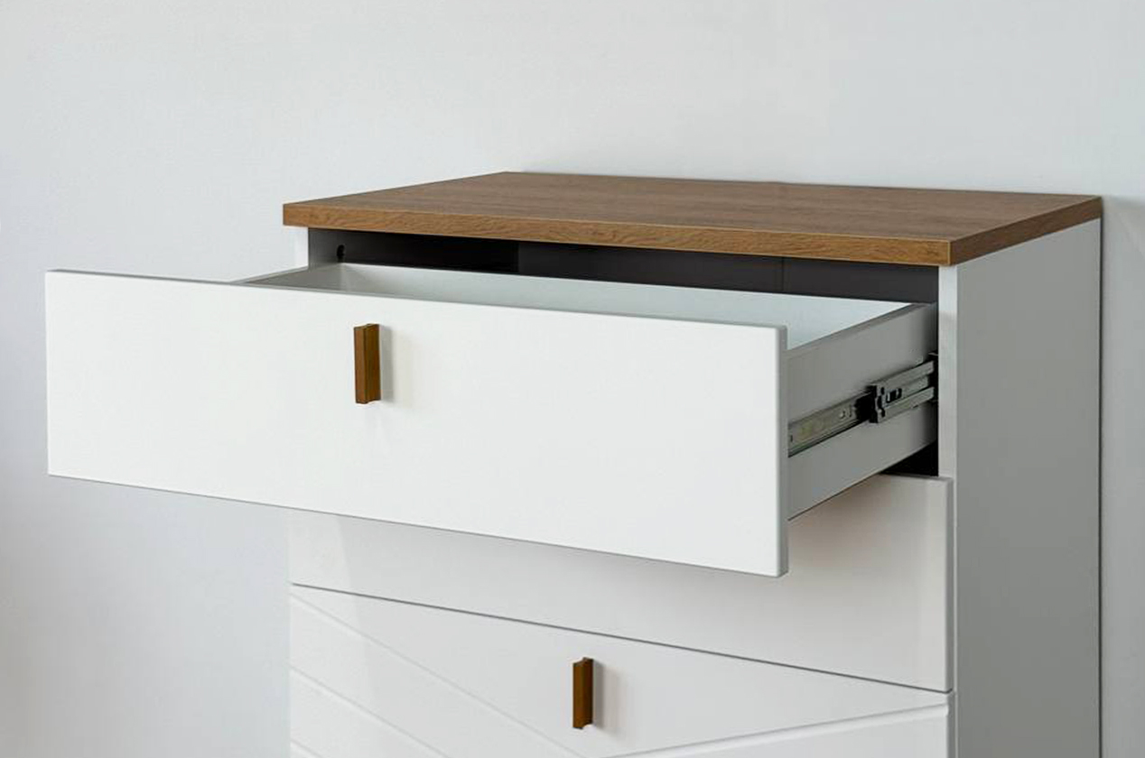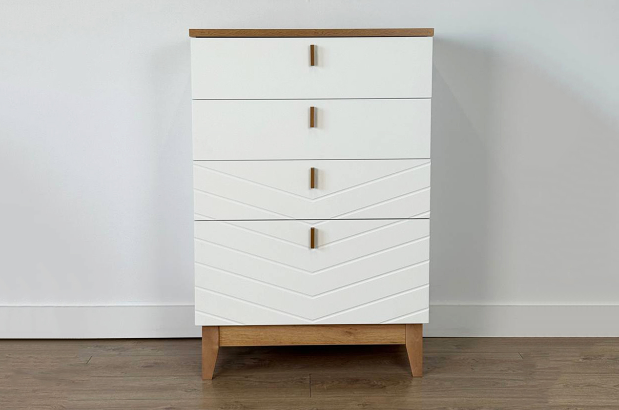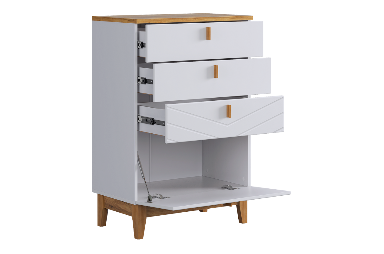 Комод сочетает в себе лаконичный скандинавский дизайн и многоуровневую систему хранения. Благодаря комбинации выкатных ящиков и скрытого отсека он помогает организовать хранение самых разных вещей, поддерживая порядок и эстетику в спальне, гостиной или прихожей.