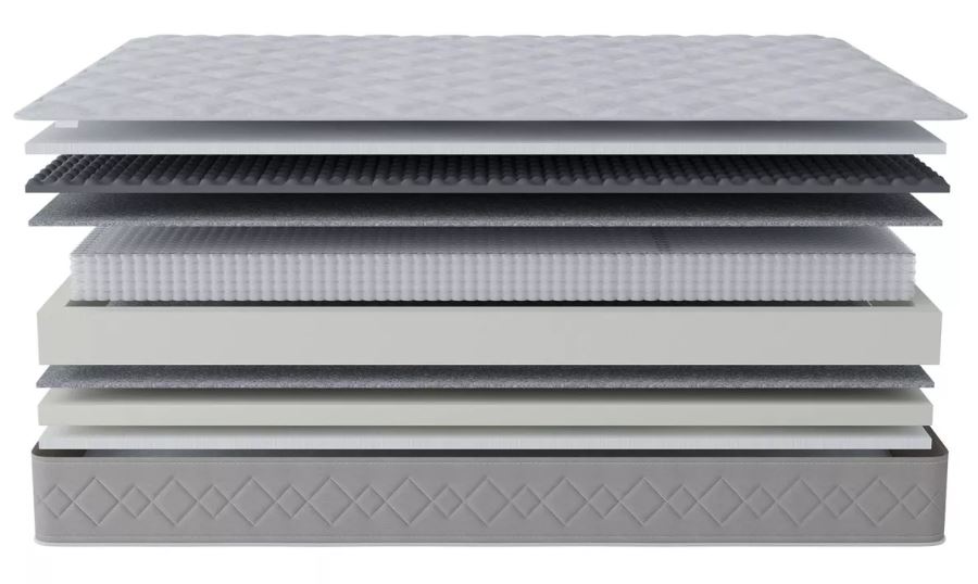Для дополнительного удобства используются два разных типа наполнителей: одна сторона оснащена эластичной пеной толщиной 4 см, обеспечивающей равномерное распределение веса и поддержку тела, тогда как вторая покрыта мемориксом с угольным покрытием и уникальной ячеистой структурой, создающим массажный эффект и точно повторяя очертания вашего тела.